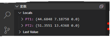 ブレークポイントによって実行が中断された際、変数に割り当てられている現在の値やコード文が返す値を確認することができます。