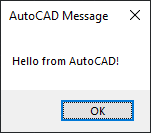 メッセージ ボックスに「Hello from AutoCAD!」と表示されます。