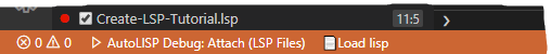 AutoLISP Extension を適切に環境設定し、現在のエディタ ウィンドウで LSP ファイルを開いたら、Visual Studio Code を使用して LSP ファイルに保存されている AutoLISP コード文をデバッグする準備は完了です。