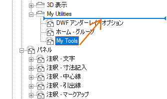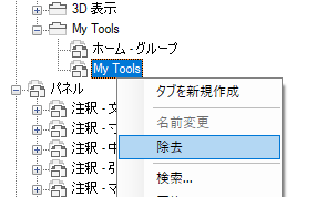 [タブを新規作成]という名前の新しいリボン タブが[タブ]ノードの一番下に表示されます。