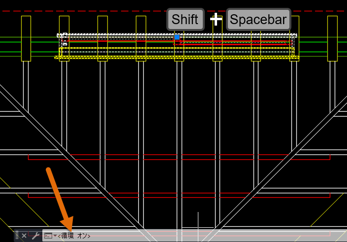 たとえば、1 階の平面図の上に構造伏図をコピーして位置合わせを確認した場合、重なり合ったオブジェクトが多数生成されます。これにより、オブジェクトが互いに重なりあって、特定のオブジェクトを選択するのが困難になります。選択の循環は、この作業に最適なツールです。