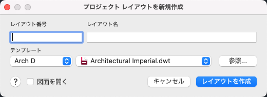 新しい図面の名前の付いたレイアウトの名前を指定します。