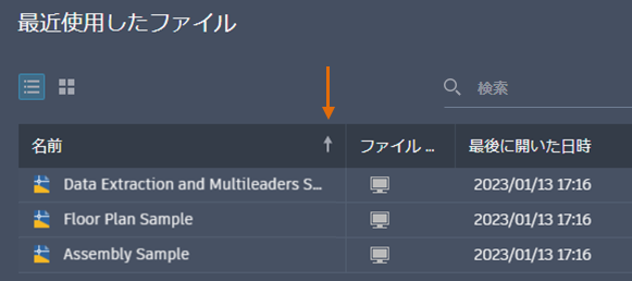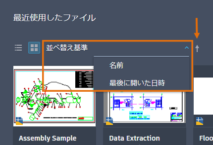 最近使用した図面のリストは、小さいサムネイルを使用することで、より多くの図面が表示できるようになりました。グリッド表示とリスト表示の両方で、最近使用した図面を並べ替えたり検索したりできるようになりました。