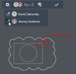 ツールバーのアバターをクリックすると、アクティブなトレースにコントリビューションを加えたメンバーが表示されます。