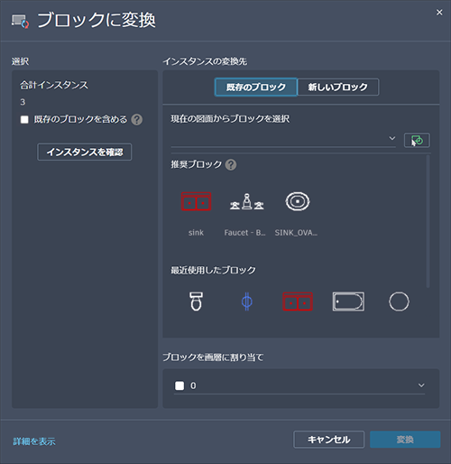 選択したインスタンスを既存のブロックに変換するか、新しいブロックを作成するかを選択できるオプションがあります。