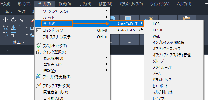 クラシック ワークスペース AutoCAD LT に含まれなくなりました。