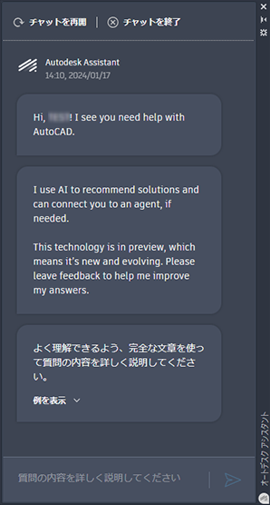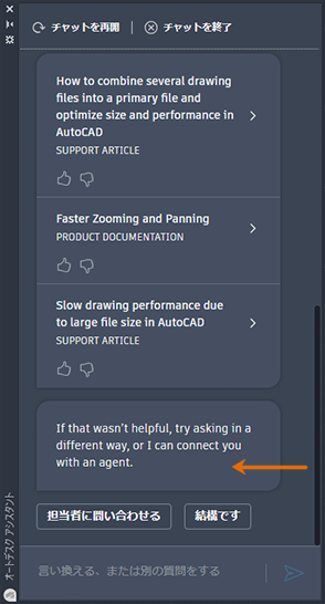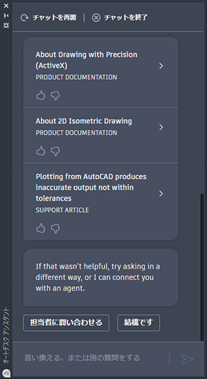 会話を終了し、オートデスク アシスタントを閉じます。