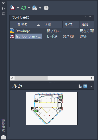 [外部参照]パレットに、図面にアタッチされたアンダーレイに関するファイル固有の情報を表示できます。また、[外部参照]パレットでは、アンダーレイのロード、ロード解除などの操作も実行できます。
