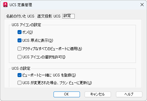 [設定]タブ([UCS 定義管理]ダイアログ ボックス)