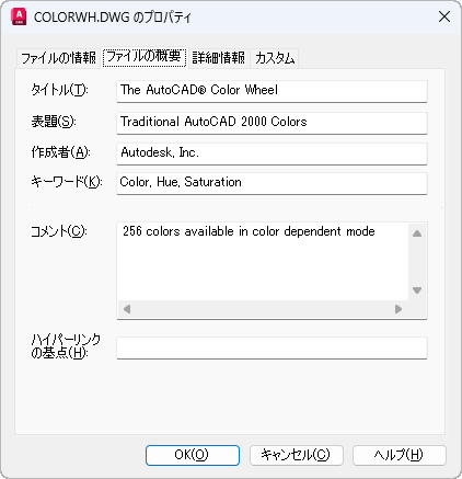 [ファイルの概要]タブ(図面のプロパティ ダイアログ ボックス)