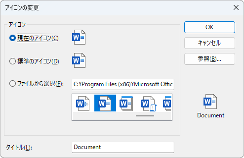 ファイルからアイコンを指定します(有効な種類は、EXE、DLL、ICO です)。