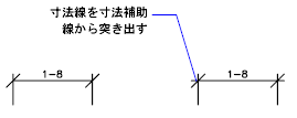 矢印の代わりに斜線を使用する場合に、寸法補助線を越えて寸法線が延長される距離をコントロールします。