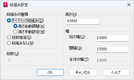 [ダイナミック段組み]の[高さ自動調整]、または[段数指定]を選択していると、文字の高さが表示されます。