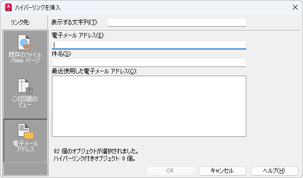 最近使用した電子メール アドレスがリストされ、ハイパーリンクに使用するアドレスを選択できます。