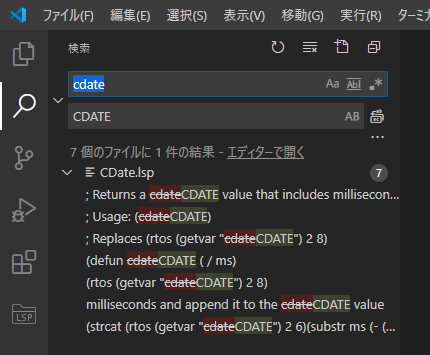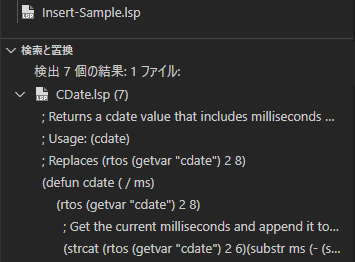返された結果に、一致するコード ステートメントと行が表示されます。