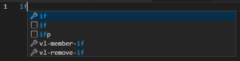 - IntelliSense 関数の一覧で挿入するコード スニペットの名前をクリックするか、項目がハイライト表示されているときに[Tab]を押します。