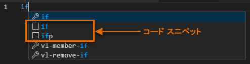 コード スニペットは VS Code の AutoComplete 機能の一部であり、先頭には AutoLISP 関数の名前を示すために使用されるレンチではなく正方形のアイコンが付きます。