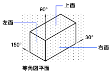 スナップ角度が 0 のとき、アイソメ平面の軸は 30 度、90 度、150 度です。スナップ スタイルをアイソメに設定した後は、3 つのアイソメ平面のいずれかを使用することができます。それぞれのアイソメ平面には対応する 2 本の軸があります。