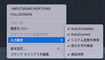 これらのオプションの設定は、コマンド ラインのメニューから変更できます。