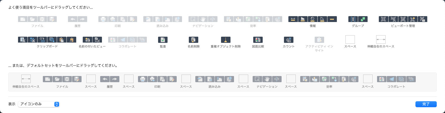 ツールバーをカスタマイズするには