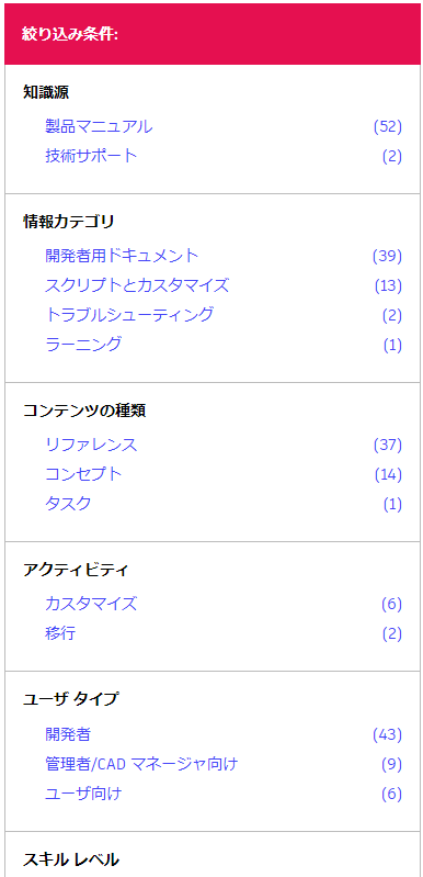 結果を絞り込むには、利用可能なフィルタを左側のペインで選択します。このフィルタは、検索結果に基づいて変化することがあります。