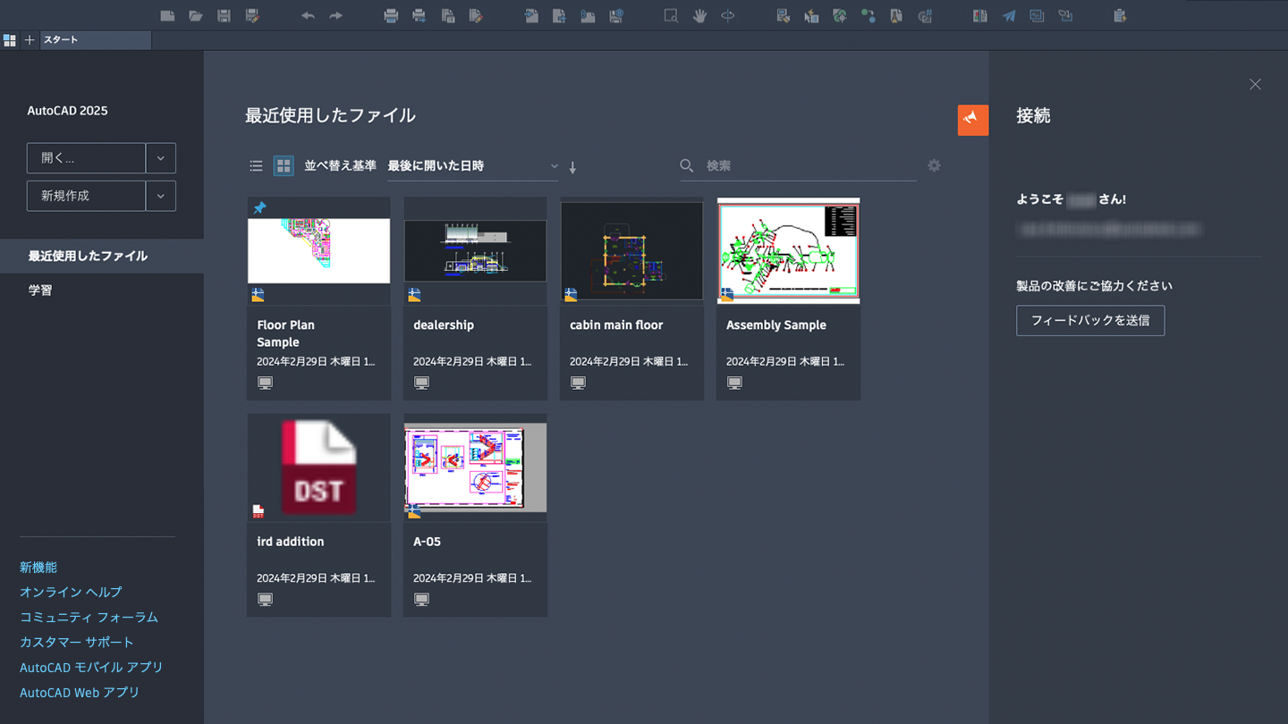 [ファイルを開く]のパフォーマンス: 機能を改善し、2D 図面ファイルを開くのに要する時間が短縮されました。