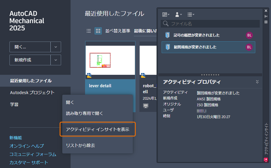[ファイルを開く]のパフォーマンス: 大きくて複雑な図面ファイルを開くのに要する時間を短縮する機能が改善されました。