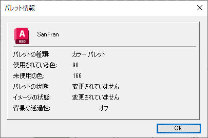 選択すると、再び[パレット管理]ダイアログ ボックスが表示され、選択した色がパレットに表示されます。