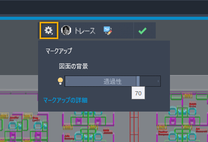 読み込まれたマークアップを表示するときに、背景の透過性を変更して、読み込まれたマークアップの表示/非表示を調整することができます。