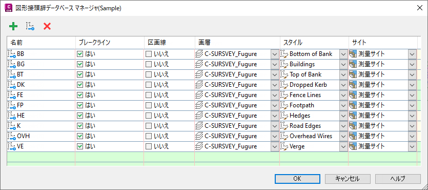 データ コレクタがラインワーク コード セットをサポートしていない場合は、図形コマンド BEG などの規則を使用して、図形の線分の開始を示します。このようなケースとして、Autodesk Civil 3D のデータの一貫処理機能をサポートしていない、一部のデータ コレクション変換ツールなどが考えられます。