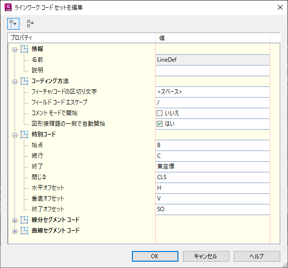[フィーチャ/コードの区切り文字]プロパティの値には<スペース>を使用することをお勧めします。
