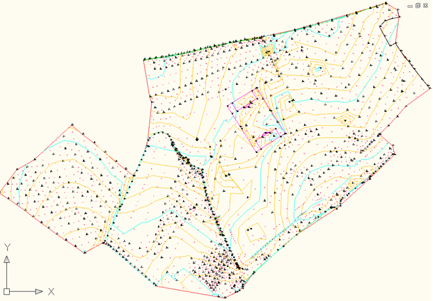 このワークフローの次の 2 つの手順では、サンプル測量データの読み込み結果と作業結果を示します。 このワークフローの例として図 4 に示すフィールドを使用します。