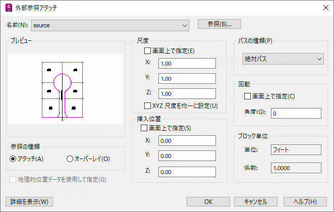 [アタッチ] [パスの種類]の推奨値は[相対パス]です。