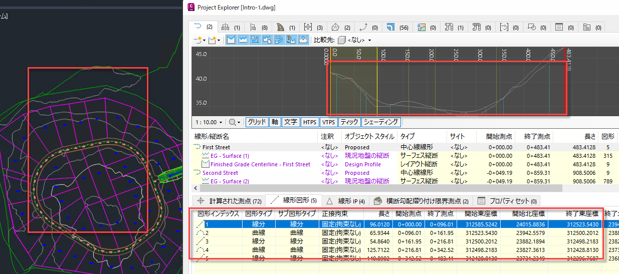 AutoCAD ビューポートでズーム、画面移動、または一時的にハイライト表示するキーボード ショートカットは、多くの Civil 3D オブジェクトのサブオブジェクト レベルでも機能します。たとえば、上記のキーボード ショートカットを使用すると、次の操作を実行できます。