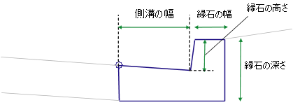 レイアウト モードの場合、入力パラメータ値により指定される情報に従って、縁石および側溝のシェイプを描画します。