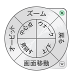 SteeringWheels は、複数のボタンで構成されたトラッキング メニューです。ホイールの各ボタンが、1 つのナビゲーション ツールに相当します。モデルの現在の表示を、さまざまな方法で画面移動、ズーム、または操作できます。
