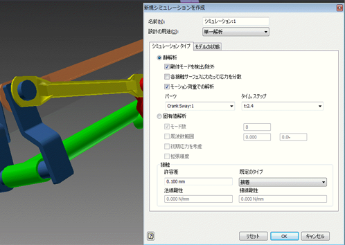 - 解析は、単一パーツのオカレンスと、ダイナミック シミュレーションで指定された単一のタイム ステップに制限されます。他のボディは自動的に除外されます。すべての境界条件は、ダイナミック シミュレーションからインポートされます。