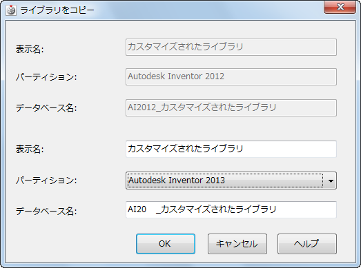 カスタマイズされた CC ライブラリのマイグレーションは、2 つの手順で行います。最初の手順は、Autodesk Data Management Server (ADMS)のマイグレーションです。2 番目の手順は、カスタマイズされた CC ライブラリの新しいバージョンの Inventor への更新と、旧アセンブリの更新です。