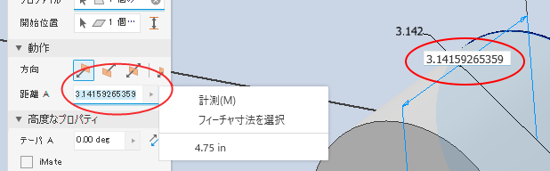 また、押し出しの間隔など、複数の面を選択する必要があるコマンドでは、各選択に異なる色が表示され、入力ジオメトリを簡単に区別できます。