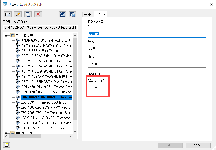 詳細については、「新しいチューブ & パイプ スタイルを作成するには」を参照してください。
