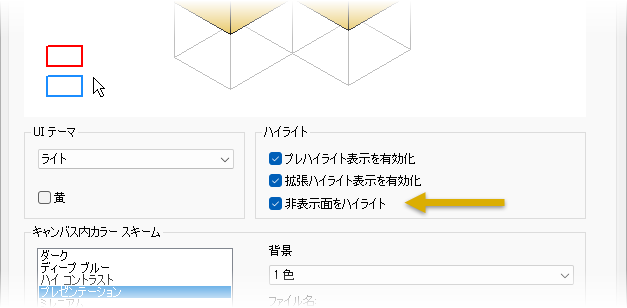 新しい[非表示面をハイライト]オプションを使用するには、 [アプリケーション オプション]