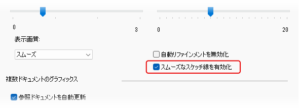 スケッチ ジオメトリの表示が改善され、曲線がより滑らかに表示されるようになりました。このアプリケーション オプションは、既定でオンになっています。