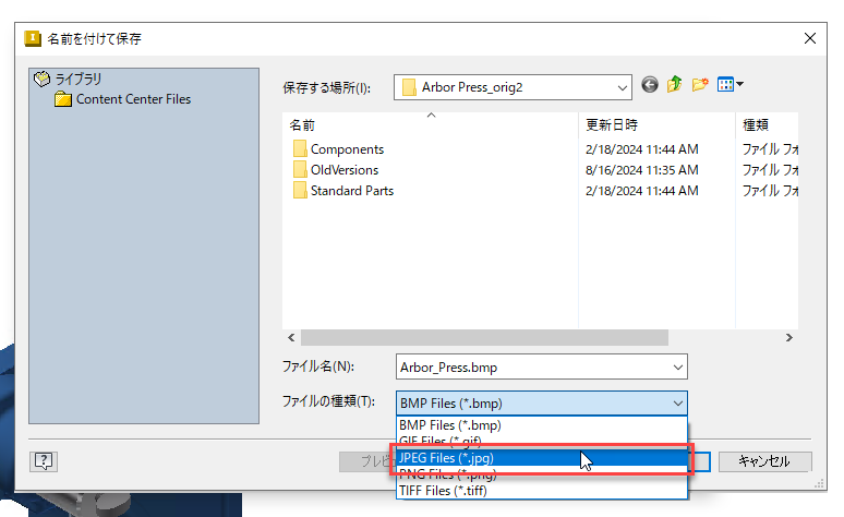 Inventor は最後に使用したイメージ エクスポート ファイル形式を記憶し、以降のセッションに適用するようになりました。