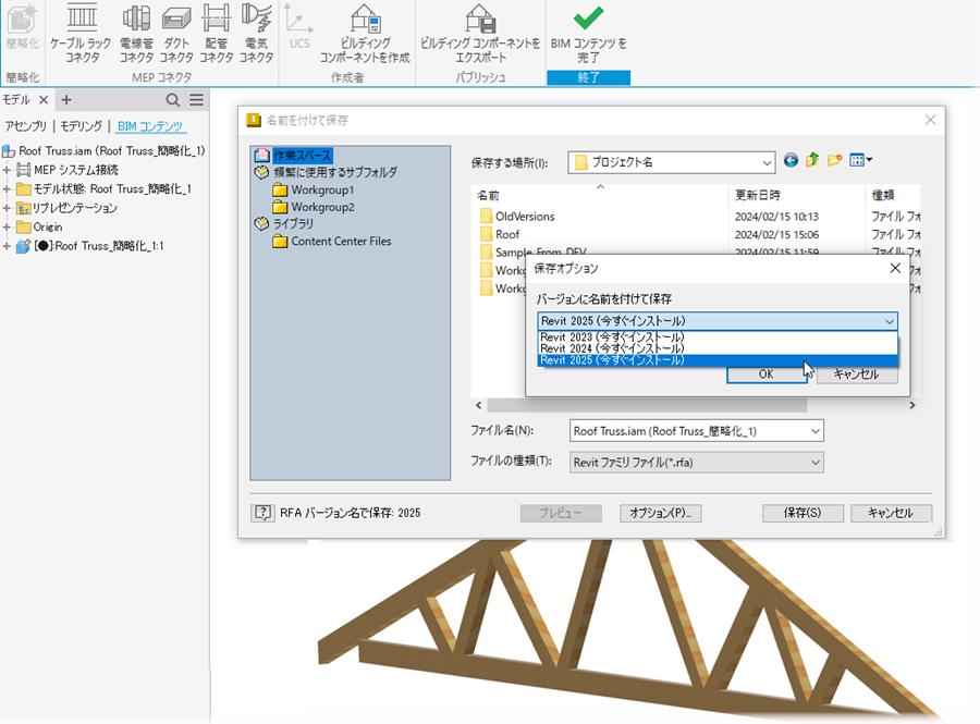[簡略化] コマンドを使用して Revit (*.RVT)ファイルを書き出す場合は、ドロップダウン リストからバージョンを選択します。