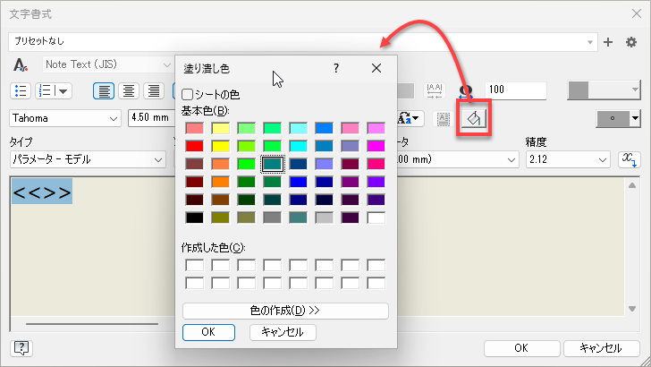図面寸法の[文字書式]ダイアログに[背景の塗り潰し]オプションが追加され、図面の読みやすさが向上しました。