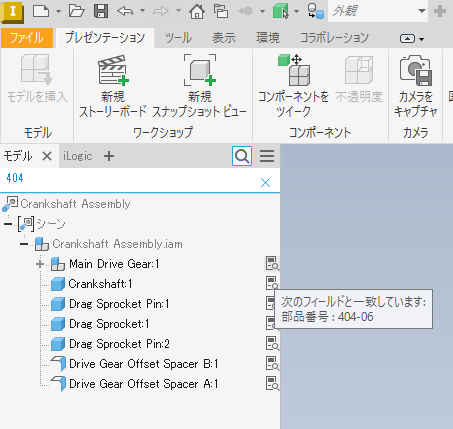 このリリースの Inventor では、従属ドキュメントの iProperty を IPN ファイル タイプで検索する機能が追加されました。