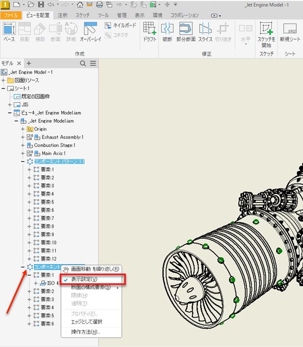 図面ブラウザでコンポーネント パターンを選択できるようになりました。コンポーネント パターンを選択すると、そのパターン(のみ)およびそのパターン(またはパターンのパターン)を構成するグラフィックス内のすべてのコンポーネントのブラウザ エントリがハイライト表示されます。さらに、コンテキスト メニューに [表示] と [エッジを選択] オプションが追加されました。