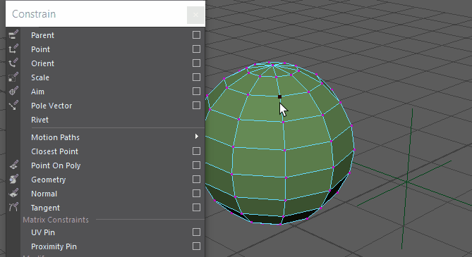 - アニメーション(Animation) ([F4])またはリギング(Rigging) ([F3])メニュー セットでを選択します。