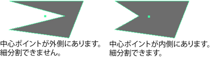 穴のあるフェースに対して分割の追加(Add Divisions)機能を使用することはできません。また、凹部のフェースは、中心のポイントがフェースの内側になければ細分割はできません。