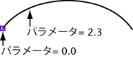 パラメータとは、カーブまたはサーフェス上のポイントを示す固有の数値(座標のようなもの)です。パラメータを使用すると、カーブの長さに沿った特定のポイントを参照できます。パラメータ値が高いほど、ポイントはカーブに沿って離れた位置にあることになります。
